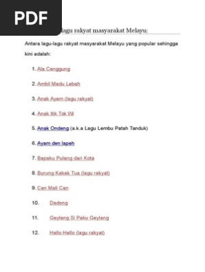 . Jabatan Warisan Negara Malaysia. Lagu Rakyat Lirik Lagu Ulek Mayang Lirik Lagu Tepuk Amai-Amai Lirik Lagu Rasa Sayang Lirik Lagu Puteri Santubong Lirik Lagu Jong Jong Inai Lirik Lagu Can Mali Can Lirik Lagu Bapaku Pulang Lirik Lagu Ayam Den Lapeh. Home Koleksi Lagu Rakyat Nursery Rhymes.